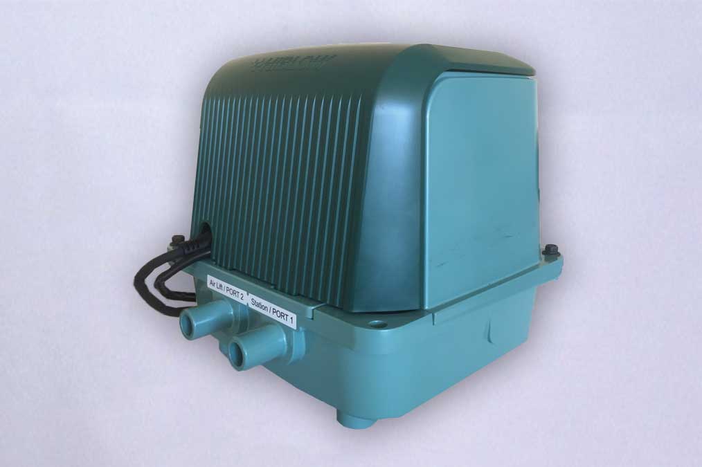 Компания ЭкоГранд совместно с японской компании Techno Takatsuki специально для автономных очистных сооружений Эко-Гранд разработала уникальный компрессор Hiblow DUO. Уникальность заключается в том, что он является двойным и весь электрический блок управления станции находится внутри Hiblow DUO.